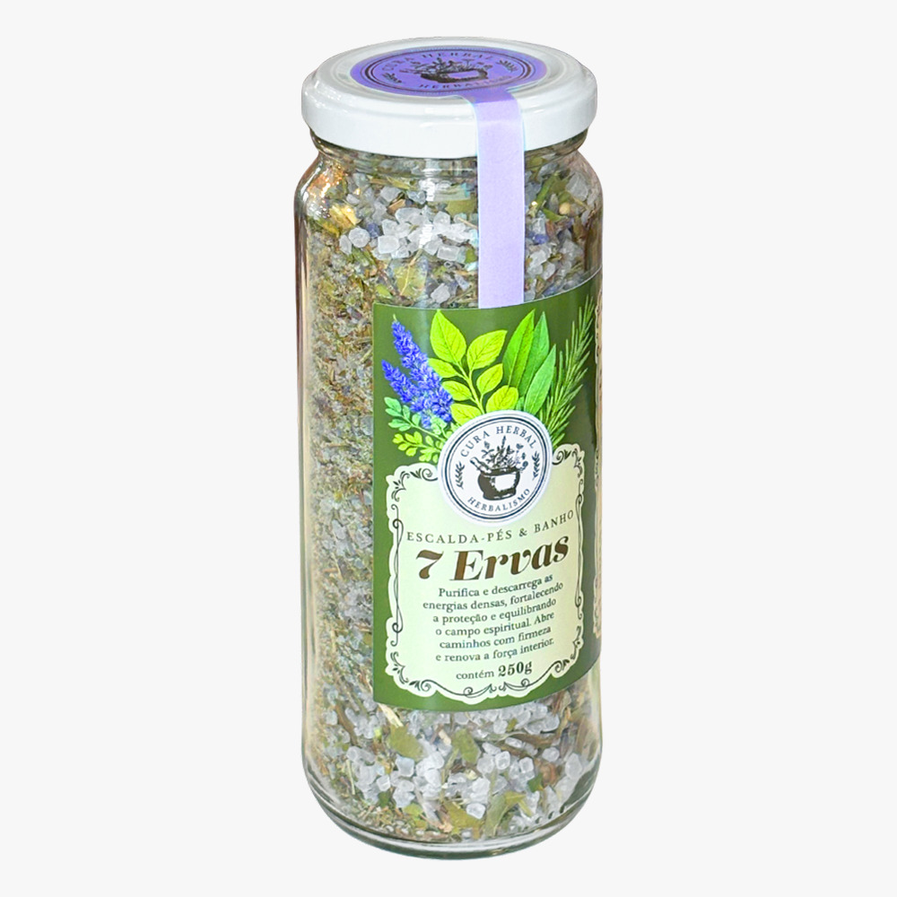 🌿 Banho de 7 Ervas no Vidro 250g – Proteção, Limpeza Energética e Renovação Espiritual