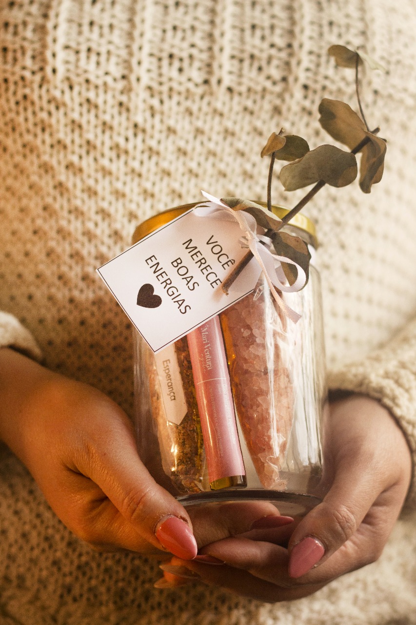 O Boas Energias no Pote foi pensado como um refúgio em forma de presente. Dentro dele, você encontra uma seleção de itens para cuidar da sua energia com leveza, aconchego e intenção.