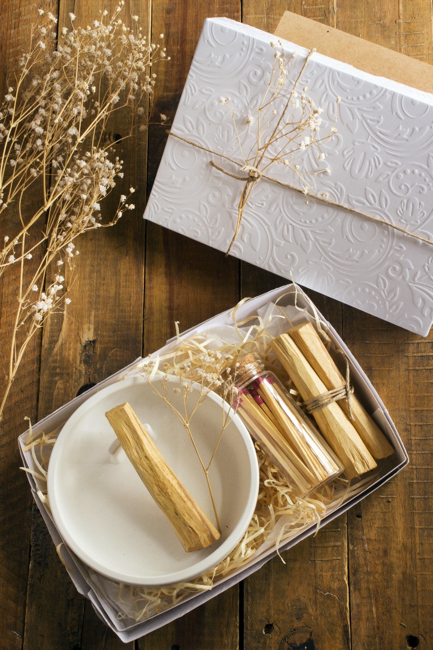 🔸 Porta Palo Santo em gesso – Peça artesanal, minimalista e resistente, ideal para apoiar as lascas com segurança durante a defumação.